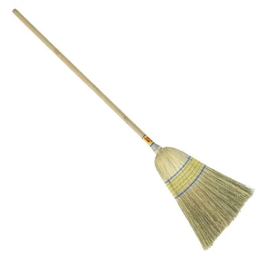 Escoba caramelo hecha de fibra 100% espiga natural de 7 hilos, ideal para el uso en el interior ó exterior de la casa.