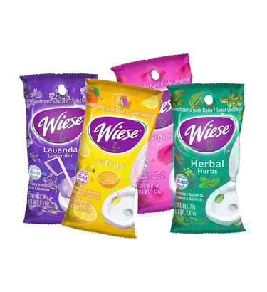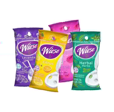 Brinda aroma continuo y limpieza en cada descarga, su practica pastilla se adapta fácilmente a su sanitario, no se evapora con el aire ya que actúa solo con el agua y rinde hasta 320 descargas