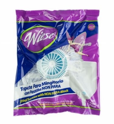 Tapete con pastilla para urinal, no se evapora con el aire ya que actúa con el agua solamente, contiene enzimas que ayudan a evitar la formación de sarro y los malos olores. Su diseño es capaz de impedir el paso a objetos tales como: colillas de cigarro, papel, etc.