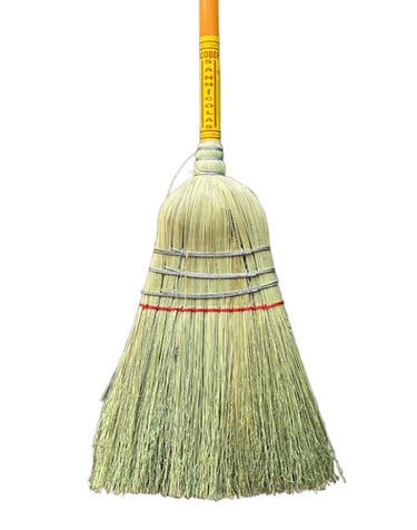 Escoba peñolera de espiga natural reforzada para uso ideal para patios e interiores.