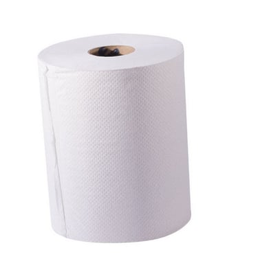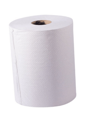 Toalla en rollo para las manos, de hoja sencilla, color blanco, brinda una gran absorbencia y resistencia en húmedo.