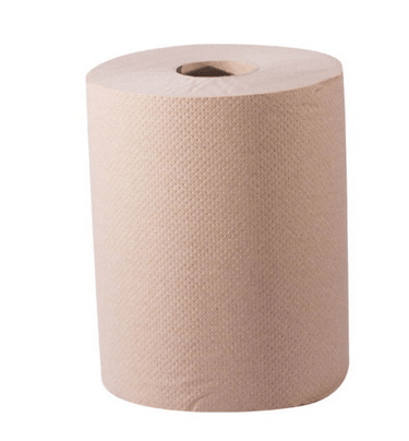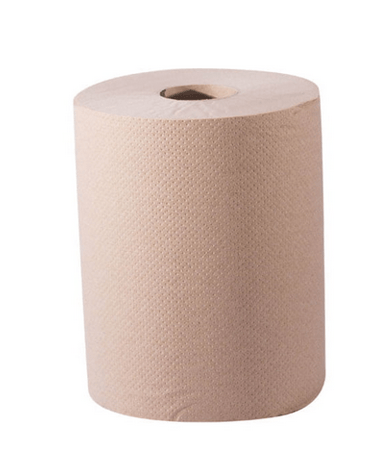 Toalla en rollo para las manos, de hoja sencilla, color café, brinda una gran absorbencia y resistencia en húmedo.